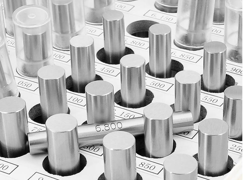 Sada meracích kolíkov, trieda tolerancie 1 Vyhotovenie: Z vysoko kvalitnej nástrojovej ocele po špeciálnom legovaní a niekoľkonásobnom umelom starnutí. Tvrdé (62 ± 2 HRC), popustené a veľmi presne brúsené. Použitie: Stupnicové šablóny pre indikačné meracie zariadenia, na kontrolu rozteče osí, kuželov a ostatných obrobkov v spojení s koncovými mierkami za účelom detekcie priemeru odstupu závitov alebo priemeru úkosu priemeru ozubenia ozubených kolies. Trieda tolerancie 1. Výrobca: Einkaufsbüro Deutscher Eisenhändler GmbH, EDE Platz 1, 42389 Wuppertal, DE, +4920260960, webkontakt@ede.de