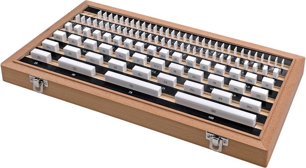 Sada koncových měrek, keramická Provedení: Zo zirkónovej keramiky, sú extrémne odolné proti opotrebovaniu a korózii. Každá miera je označená vlastným samostatným identifikačným číslom. Trieda tolerancie 1: Najčastejšie použitie na mieste merania na kontrolu pravítok a na nastavenie meracích prístrojov. Výrobca: Einkaufsbüro Deutscher Eisenhändler GmbH, EDE Platz 1, 42389 Wuppertal, DE, +4920260960, webkontakt@ede.de