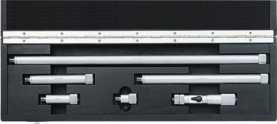 Sada dutinových mikrometrov Provedenie: Stupnica matne pochromovaná, meracie plochy lapované dokulata, nastaviteľná meracia plocha. Ľahká trubková konštrukcia s vysokou tuhosťou. S termickou izoláciou na držadle a aretačným ústrojenstvom. Meracia hlava 44 cm. Výrobca: Mahr GmbH, Carl-Mahr-Str. 1, 37073 Göttingen, DE, +49 551 7073 0, info@mahr.com