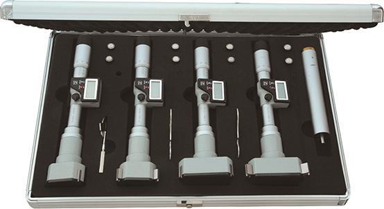 Sada digitálnych dutinových mikrometrov Provedenie: S 3-liniovým kontaktom, meracie plochy z tvrdokovu, samostrediacia meracia hlava, puzdro stupnice a puzdro matne chrómované. Dodávame vrátane batérie CR2032, 3 V, v hliníkovom boxe. Funkcia: Prepínanie mm/palce, automatické zapnutie otočením bubínka, blokácia tlačidla pre nastavenú nulovú pozíciu, nie je nutné zadávať nulovú pozíciu po každom zapnutí (absolútny systém), reset (vynulovanie) je možné aktivovať na každej pozícii, funkcia prednastavenia (rozsah meracích hodnôt), ABS (prepínanie z relatívneho na absolútne meranie). Použitie: Na priechodné a slepé otvory. Výrobca: Einkaufsbüro Deutscher Eisenhändler GmbH, EDE Platz 1, 42389 Wuppertal, DE, +4920260960, webkontakt@ede.de