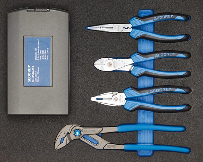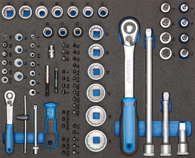 Sortiment náradia, 147 kusov Provedenie: Vhodné pre dielenský vozík GEDORE a pojazdný dielenský stôl. Dodáva sa v dvojfarebnej vložke z penovej hmoty, čím je okamžite vidieť, ktoré náradie chýba. Obsah sady: 1 nástrojový modul nástrčné kľúče 81 kusov obsahuje: 1 prepínacia ráčna 1/4" 11 nástrčných kľúčov dvanásťhranných 1/4" 4; 5; 5,5; 6; 7; 8; 9; 10; 11; 12, 13 mm 6 hlavíc šesťhranných nástrčných kľúčov 1/4“ s vonkajším TORX® E 4; 5; 6; 7; 8; 10 1 priečna rukoväť so smýkadlom 1/4" 1 kardanový nástavec 1/4" 97 mm 1 násad náradia 1/4" 1 bit adaptér 1/4“ 1 multirukoväť 1/4" 1 držiak bitu 1/4" 4 bity 1/4" ploché 4; 5,5; 6,5; 8 mm 5 bitov 1/4" inbus 2,5; 3; 4; 5; 6 mm 3 bity 1/4" vnútorné mnohozub M5; 6; 8 11 bitov 1/4“ s vnútorným TORX® T 6; 7; 8; 9; 10; 15; 20; 25; 27; 30; 40 3 bity 1/4" krížové PH 1; 2; 3 3 bity 1/4" krížová drážka PZ 1; 2; 3 1 prepínacia ráčna 1/2" 16 hlavíc pre dvanásťhranné nástrčné kľúče 1/2" 10; 11; 12; 13; 14; 15; 16; 17; 18; 19; 21; 22; 24; 27; 30; 32 mm 8 adaptér-bitov 1/2" inbus 5; 6; 7; 8; 9; 10; 12; 14 mm 1 nástavec 1/2" 63 mm 2 nástavce kardanu 1/2" 125; 250 mm 1 nástrojový modul krúžkové vidlicové kľúče 24 kusov obsahuje: 16 krúžkových vidlicových kľúčov 8; 9; 10; 11; 12; 13; 14; 15; 16; 17; 18; 19; 20; 21; 22; 24 mm 1 sada uhlových skrutkovačov inbus 2; 2,5; 3; 4; 5; 6; 8; 10 mm 1 nástrojový modul ručné náradie 14 kusov obsahuje: 4 ploché skrutkovače s úderovou hlavou 3,5; 5,5; 6,5; 8 2 krížové skrutkovače s úderovou hlavou PH 1; 2 1 zámočnícke kladivo 500 g 1 dôlčík 120 x 12 x 5 mm 3 vytlkače závlačiek 1,5; 3; 4 mm 1 plochý sekáč osmihran 250 x 24 mm 1 krížový sekáč osmihran 125 x 10 x 5 mm 1 prúbojník osmihran 120 x 12 x 5 mm 1 nástrojový modul kliešte 28 kusov obsahuje: 1 univerzálne kliešte 10" 1 silové kombinované kliešte 200 mm 1 viacúčelové ploché guľaté kliešte 200 mm 1 silové štípacie kliešte s bočným ostrím 180 mm 1 box na spirálové vrtáky 24 kusov Výrobca: GEDORE Werkzeugfabrik GmbH & Co. KG, Remscheider Straße 149, 42899 Remscheid, DE, +492191596900, gedore.empfang@gedore.com