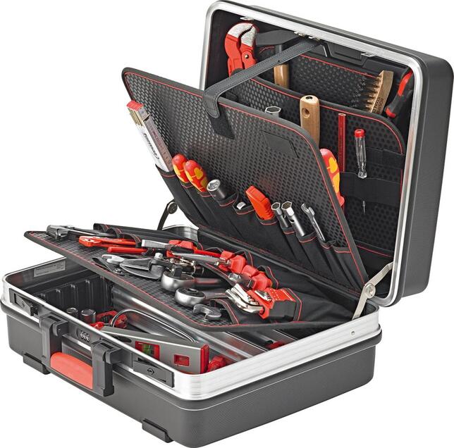 Sada sanitárneho náradia, 50 kusov Obsah sady: 1 kľúč s kliešťovým mechanizmom, 250 mm 2 obojstranné vidlicové kľúče 10 x 13; 17 x 19 mm 3 trubkové nástrčné kľúče 10 x 11; 12 x 13; 17 x 19 mm 1 univerzálny stupňový kľúč 3/8"–1" 1 prestrčná ráčna, 32 zubov 1 montážny kľúč 17 x 19 mm; M10 1 sanitárny krížový kľúč 3/8"; 1/2"; 3/4"; 1" 9 inbusových kľúčov s guľovou hlavou 1,5; 2; 2,5; 3; 4; 5; 6; 8; 10 mm 1 ráčna s prepínacou páčkou 1/2", 60 zubov, s dvousložkovou plastovou rukoväťou 1 nástavec 1/2", 125 mm 3 vložky šesťhranných nástrčných kľúčov 1/2" 10; 13; 17 mm 1 rohový hasák 1", 320 mm 1 rezačka trubiek Mini 1/8–5/8" 1 rezačka trubiek Kompakt 1/8–1.3/8" 1 kľúč na maticu hlavného kohúta 1 kliešte na vodné čerpadlá, 240 mm 1 elektrikárske dláto, 250 x 10 mm 1 zámočnícke kladivo s ochranným puzdrom násady, 300 g 1 dielenský pilník, polkruhový, špicatý, H1, 250 mm 1 2zložková rukoväť pre pilník pre 300-350 mm 1 drôtený ručný kartáč, NEREZ, hladký, 4 radový 1 píla na kov PUK®, 150 mm 1 skúšačka fázy, jednopólová, 140 mm 3 skrutkovače VDE s dvousložkovou plastovou rukoväťou pre plochú drážku 3,5; 5,5; 6,5 mm 2 skrutkovače VDE s dvousložkovou plastovou rukoväťou, krížová drážka, plochá drážka PH 1; 2 1 tesárska ceruzka 1 drevený skladací meter, 2 m 1 vodováha z ľahkého kovu, 30 cm 1 nôž Cutter, 18 mm 1 lakovací štetec, zmes štetín, 2" 1 VDE bočné štípacie kliešte, 160 mm 1 VDE kombinované kliešte, 180 mm 1 VDE úzke dlhé kliešte, rovné 200 mm 1 maliarska špachtľa, 50 mm 1 nožnice na plech IDEAL, s pákovým prevodom, pravé strihanie, 260 mm Upozornenie: Všetky nástroje v uvedenej sade zodpovedajú popisom výrobku v tomto katalógu. Vyhradzujeme si právo na zmenu zloženia sady. Výrobca: Einkaufsbüro Deutscher Eisenhändler GmbH, EDE Platz 1, 42389 Wuppertal, DE, +4920260960, webkontakt@ede.de