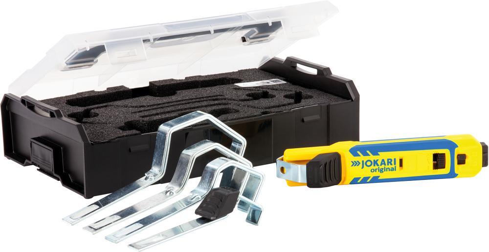 Systém nožov na káble 4-70 Provedenie: Pouzdro z polyamidu s bočnými mäkkými vložkami pre dobrý úchop. Tŕň je možné vymeniť bez ďalšieho náradia, a tak ho možno bez problémov prispôsobiť na celý pracovný úsek. Okrem toho sú tŕne vybavené otvorom, cez ktorý je možné sledovať priebeh obrezania. Vnútorná otočná čepeľ s TiN povrchovou úpravou sa automaticky prekonfiguruje z obrezávacieho na pozdĺžny rez. Vďaka tomu je možné dlhšie úseky kábla odpláštiť v jednom pracovnom kroku. Pomocou ryhovaného skrutky na konci rukoväte je možné rýchlo a presne nastaviť hĺbku rezu, značky umožňujú rýchle nastavenie často a opakovane spracovávaných typov káblov. Okrem toho sa na konci rukoväte nachádza vymeniteľná zasúvacia háková čepeľ. Pomocou 4-stupňového nastavenia hĺbky rezu je možné čepeľ nastaviť v krokoch o 0,6 mm až na 4,6 mm hrúbku izolačného plášťa. Dodávame vrátane 1 náhradného noža v rukoväti, v plastovej krabici. Použitie: Na rýchle a nekomplikované odplášťovanie všetkých bežných typov káblov. Obsah sady: 1 nôž na káble - základné telo 5 vymeniteľných tŕňov 4–16; 8–28; 27–35; 35–50; 50–70 mm Výrobca: JOKARI-Krampe GmbH, An der Vogelrute 34, 59387 Ascheberg-Herbern, DE, +49 25 99 50 19 70, info@jokari.de