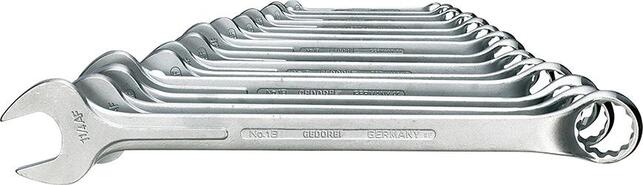 Očkový vidlicový kľúč, vyhnutý, palcový Provedenie: DIN 3113, ISO 3318, tvar B. Matne chrómovaný, otvorená čeľusť zalomená pod uhlom 15°. Dodáva sa v kartóne. Z GEDORE vanádskej ocele 31CrV3, strana s očkom hlboko zalomená. Praktický stabilný dutý dřík. Obsah sady: 5/16; 3/8; 7/16; 1/2; 9/16; 5/8; 11/16; 3/4; 13/16; 7/8; 1; 1.1/16; 1.1/8; 1.1/4'''' Výrobca: GEDORE Werkzeugfabrik GmbH & Co. KG, Remscheider Straße 149, 42899 Remscheid, DE, +492191596900, gedore.empfang@gedore.com