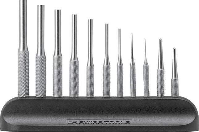 Sada priebojníkov a vytláčačov závlačiek Provedenie: DIN 6450 D, z osmihrannej nástrojovej ocele. So zušľachtenou úderovou hlavou, čím sa takmer vylučuje vznik vydutí, lemov a odlupovania. Tvrdený hrot a stopka. Dodáva sa v plastovom držiaku. Obsah sady: 2 priebojníky 1; 2 mm 9 vytláčačov závlačiek 1; 2; 3; 4; 5; 6; 7; 8; 9 mm Výrobca: PB Swiss Tools AG, Bahnhofstrasse 24, 3457 Wasen/Bern, CH, +41 34 437 71 71, info(at)pbswisstools.com