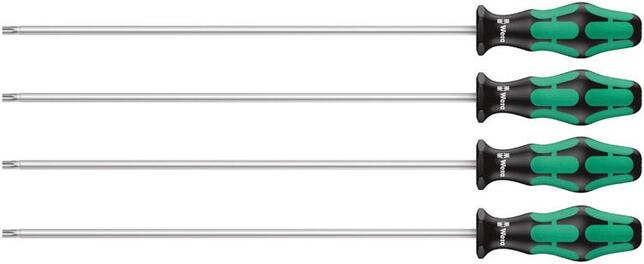 Sada skrutkovačov pre TORX®, s pridržiavacou funkciou Vyhotovenie: S guľatou čepeľou a trojsložkovou rukoväťou Kraftform, ergonomická, rukoväť s integrovanými mäkkými zónami a ochranou proti odkutáleniu. Okrem toho majú skrutkovače na hlave vyrazený symbol točivého momentu a príslušné veľkosti. Čepeľ 300 mm. S hrotom nicromatt pre vyšší točivý moment a presnejšie lícovanie, s pridržiavaním. Ideálne v situáciách, keď skrutky nie je možné pridržiavať magneticky. Výrobca: Wera Werkzeuge GmbH, Korzerter Str. 21-25, 42349 Wuppertal, DE, +4920240450, sales@wera.de