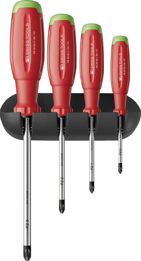 Sada krížových skrutkovačov PH Vyhotovenie: Z vysoko legovanej pružinovej ocele, s guľatou čepeľou. Presný hrot pre optimálne umiestnenie do skrutky. Rukoväť s ochranou proti odkutáleniu So zlepšenou 3-zložkovou rukoväťou SwissGrip EVO. Lepšia drsnosť a protišmykovosť, neunavujúca práca a až o 25 % vyšší prenos krútiaceho momentu v porovnaní so SwissGrip. Odolná voči rozpúšťadlám, olejom, kyselinám, soľiam a nečistotám. Okrem toho majú skrutkovače na hlave vyrazený symbol farebného kódovania, zakončenie a veľkosť. Výrobca: PB Swiss Tools AG, Bahnhofstrasse 24, 3457 Wasen/Bern, CH, +41 34 437 71 71, info(at)pbswisstools.com