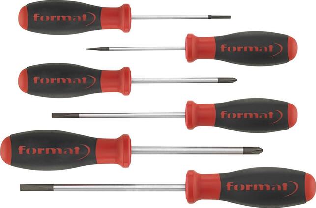 Sada skrutkovačov, s okrúhlou čepeľou, 6 kusov, ploché/ PH Provedenie: Z vysoko legovanej špeciálnej ocele. Čepeľ so špeciálnym povrchovým upravením pre vyšší krútiaci moment a rozmerovú presnosť. 2-zložková plastová rukoväť s veľkou mäkkou ergonomickou zónou pre lepšie uchopenie, ochranou proti odkutáleniu a reliéfnou hlavou. S okrúhlou čepeľou. Výrobca: Einkaufsbüro Deutscher Eisenhändler GmbH, EDE Platz 1, 42389 Wuppertal, DE, +4920260960, webkontakt@ede.de