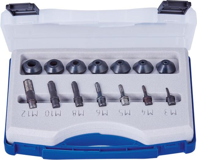Sada závitových trnov a špičiek pre nýtovaciu pištoľ na matice FireFox® a FireBird® Pro série CAS Rozsah dodávky: Vždy 1 závitový trn a 1 špička M3, M4, M5, M6, M8, M10, M12. Výrobca: GESIPA Blindniettechnik GmbH, Nordendstr. 13-39, 64546 Mörfelden-Walldorf, DE, +49 6105 962-0, info@gesipa.com