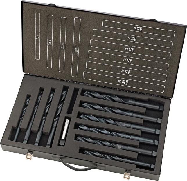 Sada spirálových vrtákov s MK stopkou Provedenie: Valcovaná oceľ/priebežne lisovaná oceľ, bez prerušenia štruktúry. Upozornenie: Pri výrobe spirálových vrtákov valcovaním ocele nevznikajú žiadne rozpoje v štruktúre materiálu. Produkt je tak vhodný pre robustné vrtacie obrábacie práce ako cenovo výhodná alternatíva pre manuálne vedené stroje. Výrobca: Einkaufsbüro Deutscher Eisenhändler GmbH, EDE Platz 1, 42389 Wuppertal, DE, +4920260960, webkontakt@ede.de