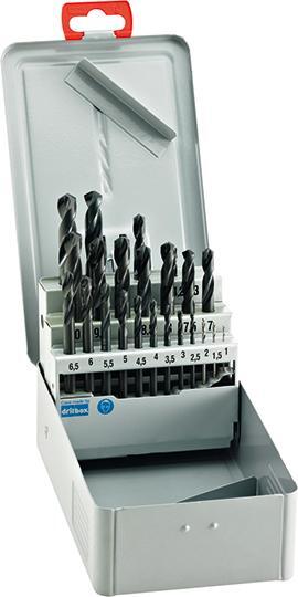 Sada krátkych vrtákov Provedenie: Vybrúsený profil, pravořezný s precíznym krížovým podbrúsením. Zahrotenie do priemeru Ø 2,4 mm podobne ako pri krížovom brúsení; od priemeru Ø 2,4 mm podľa DIN 1412, tvar A. Bočný uhol čela, bežná hrúbka jadra a bežné stúpanie šroubovice. Dodávka v robustnej, vysoko kvalitnej kovovej kazete s automatickou funkciou postavenia vrtákov pri otvorení. Provedenie: Vhodný na použitie s automatickým obrábacím centrom, sústruhmi a ručnými vŕtačkami. Vhodné najmä na konštrukčnú oceľ a oceľ s pevnosťou do 800 N/mm², ako aj tenkostenné materiály (konštrukcia karosérie). * S medzi veľkosťami pre závitové jadrové otvory: po 1 kuse Ø 3,3; 4,2; 6,8; 10,2 mm. Výrobca: Einkaufsbüro Deutscher Eisenhändler GmbH, EDE Platz 1, 42389 Wuppertal, DE, +4920260960, webkontakt@ede.de