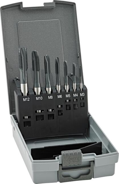 Sada strojových závitníkov na priechodné otvory Provedenie: Dodávame v robustnej, vysoko kvalitnej plastovej kazete s automatickou funkciou postavenia závitníkov pri otvorení. –M10 DIN 371 so zosilnenou stopkou. DIN 376 so stopkou proti nadmerným otáčkam. Výrobca: Einkaufsbüro Deutscher Eisenhändler GmbH, EDE Platz 1, 42389 Wuppertal, DE, +4920260960, webkontakt@ede.de