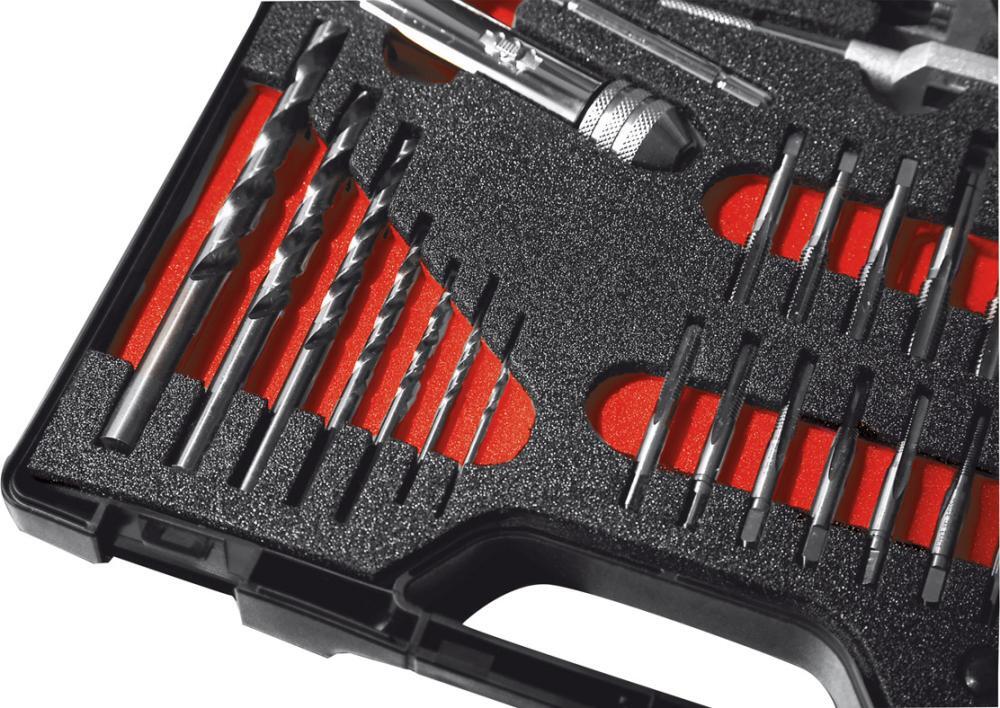 Sada ručných závitníc a závitníkov Provedenie: Dodáva sa v stabilnom plastovom kufríku s držadlami a 2 zámkami. Nástroje, bez povrchovej úpravy, sú upevnené v rôznych držakoch a okamžite k dispozícii. Výrobca: Einkaufsbüro Deutscher Eisenhändler GmbH, EDE Platz 1, 42389 Wuppertal, DE, +4920260960, webkontakt@ede.de