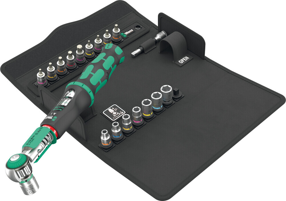 1 momentový kľúč Safe-Torque A 1 s pripojovacím rozmerom štvorkraku 1/4", rozsah merania 2-12 Nm; pre kontrolované utahovanie doprava a doľava; utahovanie a povoľovanie s utahovacím a bez utahovacieho momentu, možnosť vypnutia momentovej funkcie (funkcia Torque Lock); 72 zubov; malý spätný uhol 5°; jednoduché nastavenie a zabezpečenie požadovanej hodnoty utahovacieho momentu, so slyšitelným a viditeľným zaskočením pri dosiahnutí hodnôt na stupnici, uvoľňovací mechanizmus pri dosiahnutí nastavené hodnoty utahovacieho momentu; ergonomická dvojkomponentná rukoväť; 8 nástrčných hlavíc Zyklop, 9 nástrčných hlavíc Zyklop (vnútorný šesťhran, TORX®), 1 predĺženie Zyklop s rýchloběžným puzdrom, krátke