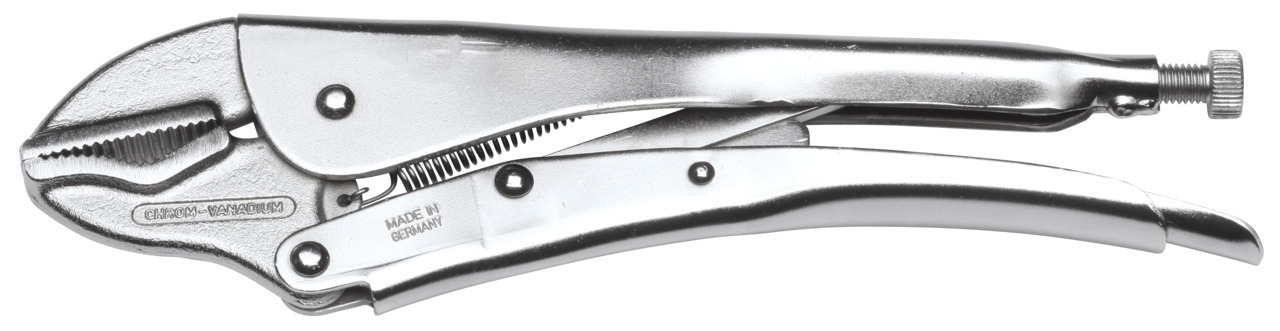 So skrutkou na nastavenie a uvoľňovacou pákou, pre č. 137 10 modré izolované ponorením, Kované, tepelne upravené čeľuste a špeciálne čeľuste pre bezpečné uchopenie, zovretie a upevnenie, GEDORE oceľ vanádiová 31CrV3, niklovaná, Čeľusťová plech tela z ocele s vysokou pevnosťou, Automaticky zváraná horná čeľusť - absolútne bezpečné spojenie s telom z oceľového plechu, Pokročilý tvar čeľustí zaručuje trojbodovú oporu pre každý prierez materiálu, Závitový otvor pripevnený zospodu, Bez možnosti rozšírenia pri veľkom zaťažení, Bezpečné uvoľnenie, Páka spúšťača pod stálym tlakom špeciálnej pružiny