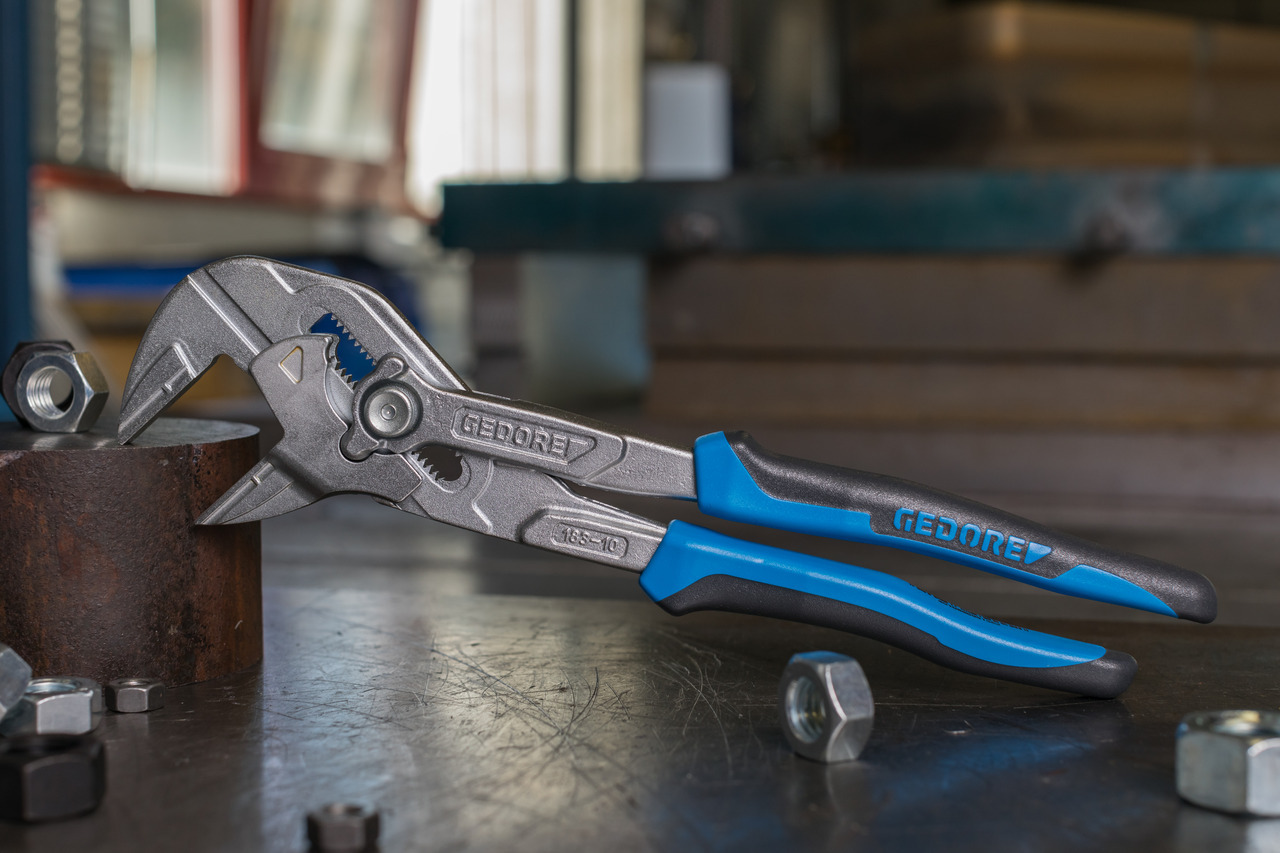 Funkcia plochého kľúča a klieští v jednom nástroji, DIN ISO 5743, môže nahradiť dva kompletné súpravy plochých strojárskych kľúčov, metrické a palcové (0 - 52 mm alebo 0 – 2"), jemná montáž skrutiek na citlivých povrchoch (napr. chrómované armatury), nastaviteľný, univerzálny nástroj na skrutkovanie, ideálne na ohýbanie, držanie, tlačenie a uchopovanie rôznych spracovávaných materiálov, bezvôľové zariadenie bez rizika poškodenia hrán, regulácia rozšírenia kľúča pomocou posuvného mechanizmu a paralelne vedených čeľustí, prakticky bezstupňovo, bezpečné zaisťovanie prepnutej rozšírenosti kľúča, aktivácia posuvného mechanizmu prakticky z akejkoľvek polohy nastavenia, možnosť využitia ako „kľúč čeľustový s ráčnou“ - rýchle a pohodlné dotiahnutie a povolenie skrutiek a matíc s šesťhranným profilom, veľký prevod (>1:10) umožňuje vysokú silu tlaku a upínania na čeľustiach, vyrobené zo špeciálne vylepšovanej ocele GEDORE pre maximálne zaťaženia, môže byť používané ako silné svorky mimo dielne, optimálne a ergonomické prispôsobenie polohy ruky k šírke rozšírenia čeľustí alebo rozšírenia kľúča, ochranné čeľuste dostupné ako možnosť, model TC = chrómovaný, s modrými ponorenými rukoväťami