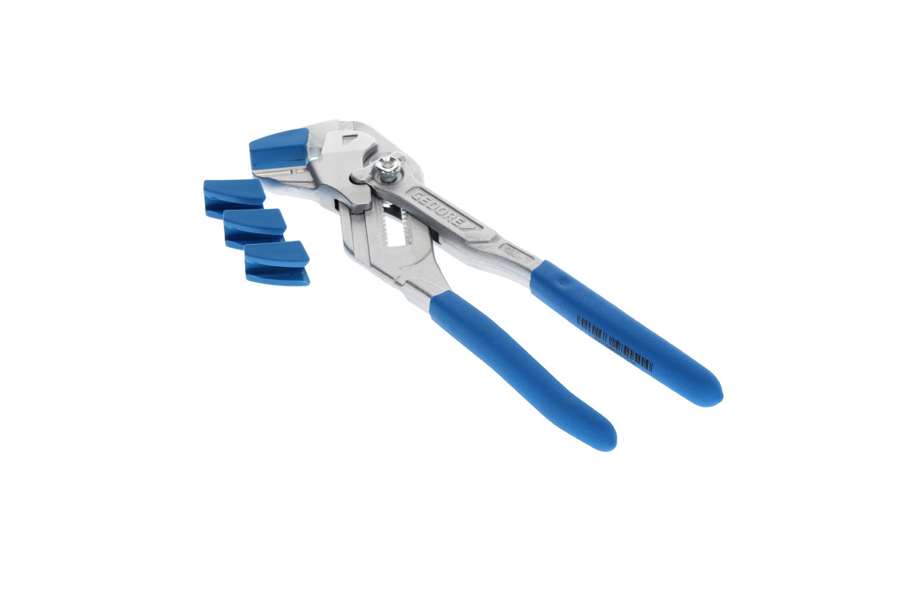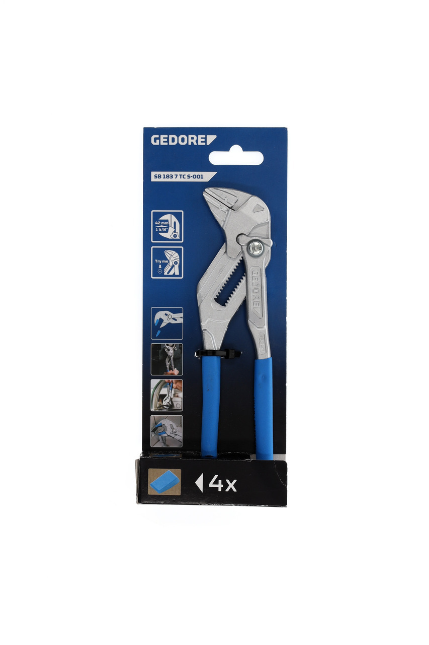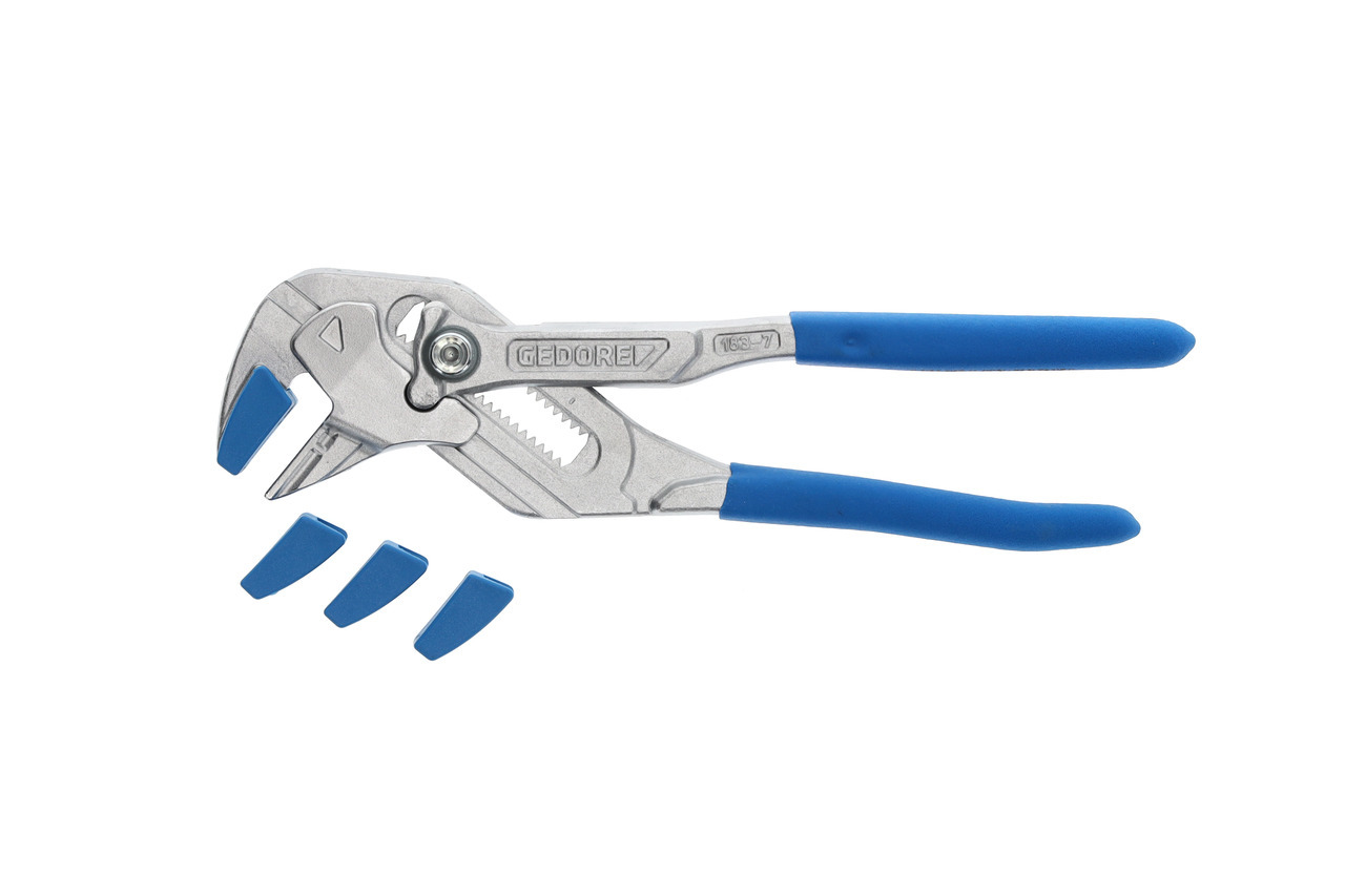 Funkcia kľúča strojového plochého a klieští v jednom nástroji, DIN ISO 5743, Môže nahradiť dva kompletné súpravy strojových plochých kľúčov, metrických a palcových (0 - 42 mm alebo 0 - 1.5/8"), Jemná montáž skrutiek na citlivých povrchoch (napr. chrómované armatury), Regulovateľný, univerzálny nástroj na skrutkovanie, Ideálne na ohýbanie, držanie, tlačenie a uchopenie rôznych materiálov spracovávaných, Zariadenie bez vôľ bez rizika poškodenia hrán, Regulácia rozťahovania kľúča vďaka posuvnému mechanizmu a paralelne vedeným čeľustiam, prakticky bezstupňovo, Bezpečný zámok pre nastavenú rozťahovanosť kľúča, Aktivácia posuvného mechanizmu prakticky z akejkoľvek polohy nastavenia, Možnosť využitia ako „Kľúč čeľusťový s ráčnou“ - rýchle a pohodlné dotiahnutie a povolenie skrutiek a matíc šesťhranných, Veľké prevodové pomery (>1:10) umožňujú vysokú silu tlaku a upínania na čeľustiach, Vyrobené zo špeciálne vylepšovanej ocele GEDORE na maximálne zaťaženia, Môže byť používané ako silné svorky mimo dielne, Optimálne a ergonomické prispôsobenie polohy ruky k šírke rozťahovania čeľustí alebo rozťahovaniu kľúča, Ochranné čeľuste dostupné ako možnosť, Model TC = chrómovaný, s modrými ponorenými rukoväťami