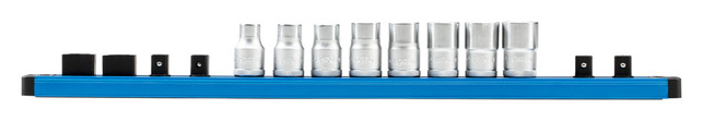 12 alebo 16 vonkajších štvorcových hrán vhodných pre zásuvky s nominálnou veľkosťou 12,5 (1/2"), 2 vnútorné štvorcové adaptéry pre ráčne, posuvné držadlá, predĺženia atď., Silný magnet umožňuje bezpečné uchytenie pásky k kovovým predmetom, Dodatočné otvory v lište umožňujú montáž na nemetalických predmetoch a stenách, Vložky sú bezpečne zablokované guľkou na štvorci otočením o 90°, Otočením o 90° v opačnom smere sú dosky uvoľnené a môžu byť vybrané., Dodávka bez náradia