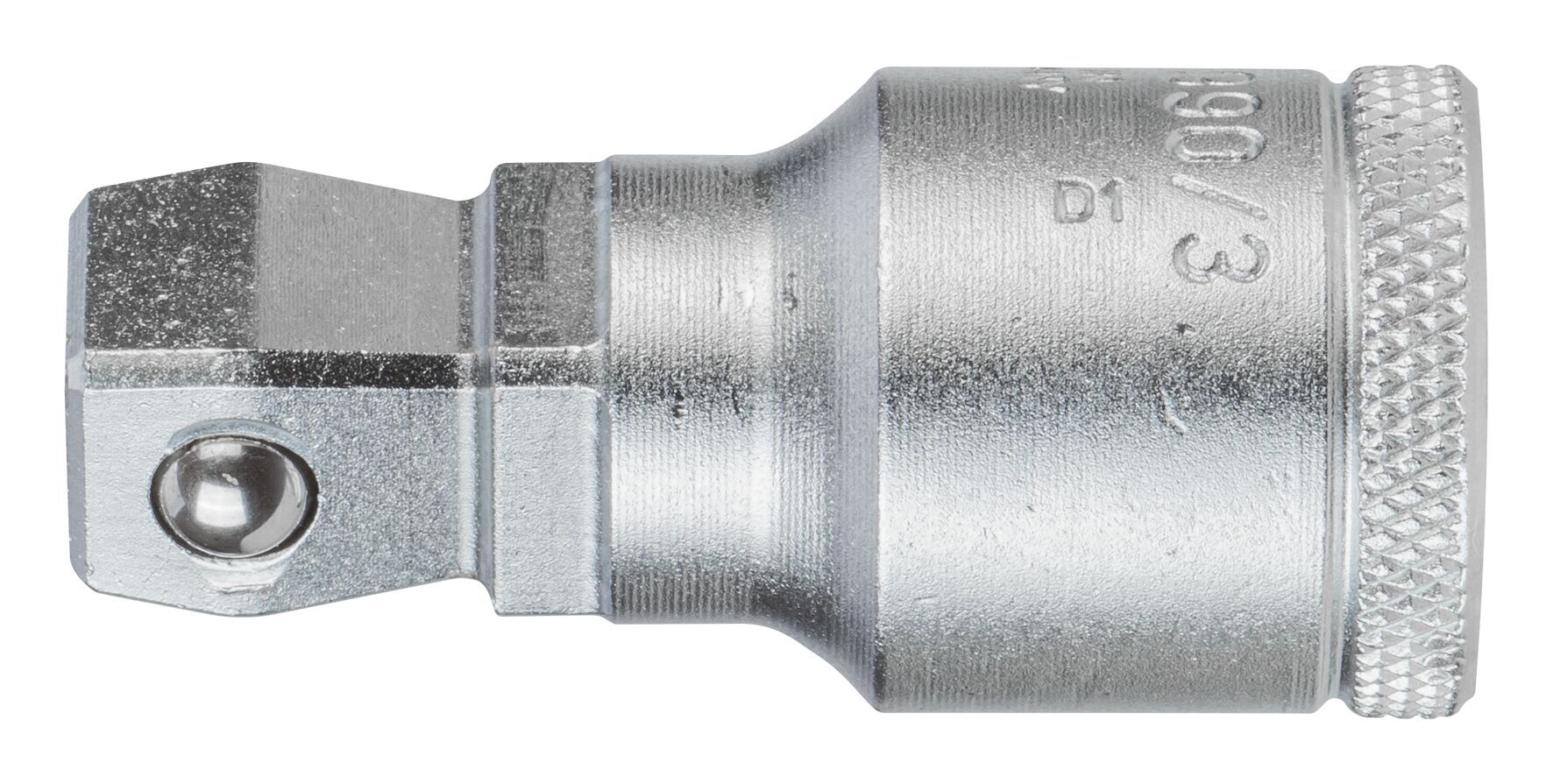 S guľovou hlavou, Pre ručne otáčané nástrčné kľúče so štvorkolíkovým zámkom podľa DIN 3120, ISO 1174, s guľovým zaisťovačom, Predĺženie umožňuje otáčanie do 18°, Maximálna nosnosť 230 Nm, Oceľ vanádiová 31CrV3, brúsená, chrómaná