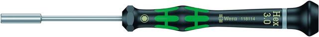 Šroubovák pre vonkajší šesťhran pre elektroniku Provedenie: S guľatou čepeľou z vysoko legovanej špeciálnej ocele a hrotom Black Point pre vyšší krútiaci moment a rozmerovú presnosť. S ergonomickou viaczložkovou rukoväťou Kraftform-Micro s integrovanými mäkkými plochami pre lepšie uchopenie, ochranou proti odvaleniu a otočnou hlavou pre rýchle zatočenie. S koncepciou troch zón (zónou presného, silného a rýchleho otáčania) pre ergonomicky lepšiu manipuláciu. Použitie: Vhodný pre presné, účinné a časovo úsporné skrutkovanie. Ideálny pre citlivé nastavovacie práce, napr. použiteľný v oblasti elektroniky. Výrobca: Wera Werkzeuge GmbH, Korzerter Str. 21-25, 42349 Wuppertal, DE, +4920240450, sales@wera.de