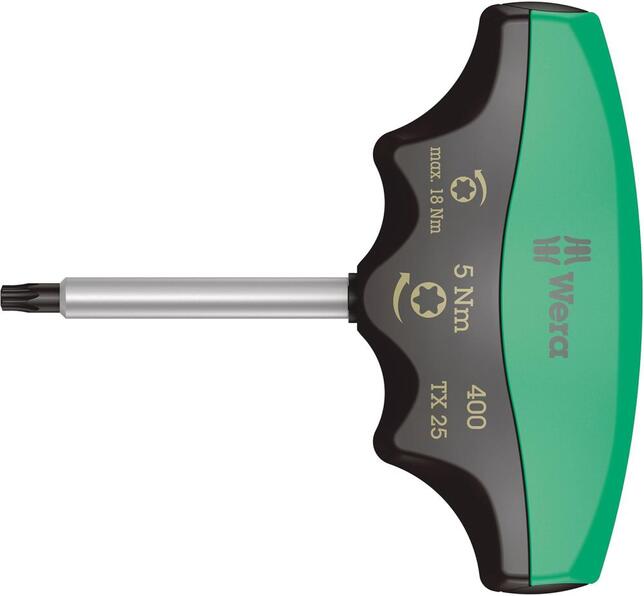 Ukazovateľ točivého momentu pre skrutky s vnútorným TORX® Vyhotovenie: S ergonomickou priečnou rukoväťou. Klzné spojenie zaručuje zreteľne počuteľný a hmatateľný signál spúšte pri dosiahnutí nastaveného utahovacieho momentu. Niekoľkonásobne vyšší uvoľňovací moment než nastavený utahovací moment, čo znamená, že na uvoľnenie skrutkových spojov väčšinou nie je potrebné žiadne ďalšie náradie. Bezchybné skrutkovanie vďaka nepreťažiteľnému klznému spojeniu a presnému prenosu krútiaceho momentu. S ochranou proti zmene nastavených hodnôt. Použitie: Pre prenos riadených utahovacích a vysokých uvoľňovacích momentov. Výrobca: Wera Werkzeuge GmbH, Korzerter Str. 21-25, 42349 Wuppertal, DE, +4920240450, sales@wera.de