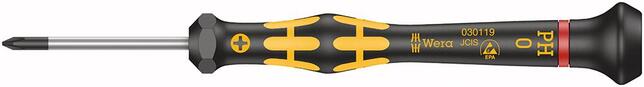 Křížový šroubovák ESD PH pre elektroniku Provedenie: S guľatou čepeľou z vysoko legovanej špeciálnej ocele a hrotom Black Point pre vyšší krútiaci moment a rozmerovú presnosť. S ergonomickou viaczložkovou rukoväťou Kraftform-Micro s integrovanými mäkkými plochami pre lepšie uchopenie, ochranou proti odvaleniu a otočnou hlavou pre rýchle zatočenie. S koncepciou troch zón (zónou presného, silného a rýchleho otáčania) pre ergonomicky lepšiu manipuláciu. Použitie: Vhodný pre presné, účinné a časovo úsporné skrutkovanie. Ideálny pre citlivé nastavovacie práce, napr. použiteľný v oblasti elektroniky a v ďalších odboroch, ktoré vyžadujú použitie skrutkovačov ESD. Výrobca: Wera Werkzeuge GmbH, Korzerter Str. 21-25, 42349 Wuppertal, DE, +4920240450, sales@wera.de