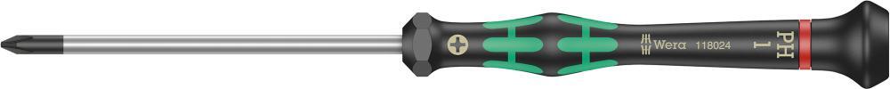 Križové skrutkovače PH pre elektroniku Vyhotovenie: S guľatou čepeľou z vysoko legovanej špeciálnej ocele a hrotom Black Point pre vyšší krútiaci moment a rozmerovú presnosť. S ergonomickou viaczložkovou rukoväťou Kraftform-Micro s integrovanými mäkkými plochami pre lepšie uchopenie, ochranou proti odvaleniu a otočnou hlavou pre rýchle zatočenie. S koncepciou troch zón (zónou presného, silného a rýchleho otáčania) pre ergonomicky lepšiu manipuláciu. Použitie: Vhodný pre presné, účinné a časovo úsporné skrutkovanie. Ideálny pre citlivé nastavovacie práce, napr. použiteľný v oblasti elektroniky. Výrobca: Wera Werkzeuge GmbH, Korzerter Str. 21-25, 42349 Wuppertal, DE, +4920240450, sales@wera.de