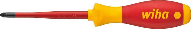 Ploché skrutkovače VDE pre krížovú drážku PH, so zníženým priemerom čepele Vyhotovenie: Z vysoko legovanej špeciálnej ocele. S guľatou izolovanou čepeľou. Zmenšený priemer čepele pre dosiahnutie hlboko uložených skrutiek. Rukoväť a čepeľ s izoláciou do 1000 V podľa IEC 60900, napr. DIN EN 60900. Okrem toho majú skrutkovače na hlave vyrazený symbol zakončenia a veľkosť. S ergonomickou viaczložkovou rukoväťou SoftFinish® s ochranou proti odvaleniu. Výrobca: Wiha Werkzeuge GmbH, Obertalstraße 3-7, 78136 Schonach, DE, +4977229590, info.de@wiha.com