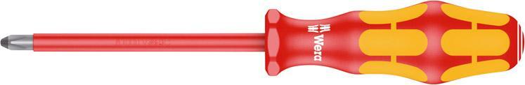 Šroubovák VDE krížový PH Provedenie: Z vysoko legovanej špeciálnej ocele. S guľatou izolovanou čepeľou. Rukoväť a čepeľ s izoláciou do 1000 V podľa IEC 60900 napr. DIN EN 60900. Okrem toho majú skrutkovače na hlave vyrazený symbol zakončenia a veľkosť. S lasertipom a mikrodrsným povrchom. Redukuje potrebnú pritlačnú silu a zabraňuje vyklznutiu z hlavy skrutky. S ergonomickou viaczložkovou rukoväťou v silovom tvare Plus s integrovanými mäkkými plochami pre lepší úchop a s ochranou proti odvaleniu. Výrobca: Wera Werkzeuge GmbH, Korzerter Str. 21-25, 42349 Wuppertal, DE, +4920240450, sales@wera.de