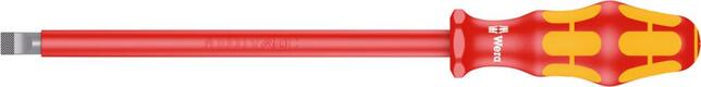 Ploché skrutkovače VDE Vyhotovenie: Z vysoko legovanej špeciálnej ocele. S guľatou izolovanou čepeľou. Rukoväť a čepeľ s izoláciou do 1000 V podľa IEC 60900 napr. DIN EN 60900. Okrem toho majú skrutkovače na hlave vyrazený symbol zakončenia a veľkosť. S lasertipom a mikrodrsným povrchom. Redukuje potrebnú prítlačnú silu a zabraňuje vyklznutiu z hlavy skrutky. S ergonomickou viaczložkovou rukoväťou v silovom tvare Plus s integrovanými mäkkými plochami pre lepší úchop a s ochranou proti odvaleniu. Výrobca: Wera Werkzeuge GmbH, Korzerter Str. 21-25, 42349 Wuppertal, DE, +4920240450, sales@wera.de