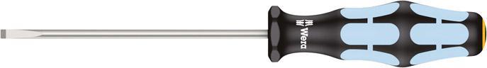 Ploché nerezové skrutkovače Vyhotovenie: Z ušľachtilej ocele. Guľatá čepeľ s úpravou Lasertip a mikrodrsným povrchom. Redukuje potrebnú pritlačnú silu a zabraňuje vyklznutiu z hlavy skrutky. Vďaka vakuovému kaleniu ľadom spĺňa čepeľ požiadavky na tvrdosť porovnateľné s bežnými nástrojmi, a preto je 100% vhodná na použitie v dielni a odolná proti opotrebovaniu. Taktiež priemyselné použitie je možné bez obmedzení. S ergonomickou viaczložkovou rukoväťou Kraftform s integrovanými mäkkými plochami pre lepší úchop a s ochranou proti odvaleniu. Okrem toho majú skrutkovače na hlave vyrazený symbol zakončenia a veľkosť. Vyhotovenie: Špeciálny produkt na prevenciu externých korózií pri spracovaní skrutiek z ušľachtilej ocele. Výrobca: Wera Werkzeuge GmbH, Korzerter Str. 21-25, 42349 Wuppertal, DE, +4920240450, sales@wera.de