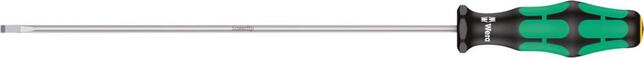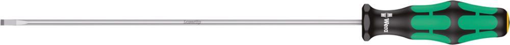 Plochý skrutkovač s kulatou čepeľou Provedenie: Z vysoko legovanej špeciálnej ocele s kulatou elektrikárskou čepeľou. Okrem toho majú skrutkovače na hlave vyrazený symbol zakončenia a veľkosť. Čepeľ s lasertipom a mikrodrsným povrchom. Redukuje potrebnú pritlačnú silu a zabraňuje vyklznutiu z hlavy skrutky. S ergonomickou viaczložkovou rukoväťou v silovom tvare Plus, s integrovanými mäkkými plochami pre lepšie uchopenie, tvrdými plochami pre vysokú pracovnú rýchlosť a ochranou proti odkutáľaniu. Výrobca: Wera Werkzeuge GmbH, Korzerter Str. 21-25, 42349 Wuppertal, DE, +4920240450, sales@wera.de