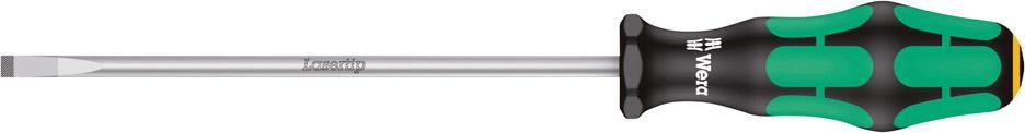 Plochý skrutkovač s okrúhlou čepeľou Provedenie: Z vysoko legovanej špeciálnej ocele s okrúhlou elektrikárskou čepeľou. Okrem toho majú skrutkovače na hlave vyrazený symbol zakončenia a veľkosť. Čepeľ s lasertipom a mikrodrsným povrchom. Redukuje potrebnú pritlačnú silu a zabraňuje vyklznutiu z hlavy skrutky. S ergonomickou viaczložkovou rukoväťou v silovom tvare Plus, s integrovanými mäkkými plochami pre lepšie uchopenie, tvrdými plochami pre vysokú pracovnú rýchlosť a ochranou proti odkutáleniu. Výrobca: Wera Werkzeuge GmbH, Korzerter Str. 21-25, 42349 Wuppertal, DE, +4920240450, sales@wera.de