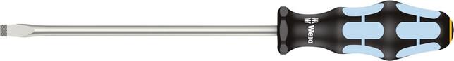 Ploché nerezové skrutkovače Vyhotovenie: Z ušľachtilej ocele. Guľatá čepeľ s úpravou Lasertip a mikrodrsným povrchom. Redukuje potrebnú pritlačnú silu a zabraňuje vyklznutiu z hlavy skrutky. Vďaka vakuovému kaleniu ľadom spĺňa čepeľ požiadavky na tvrdosť porovnateľné s bežnými nástrojmi, a preto je 100% vhodná na použitie v dielni a odolná proti opotrebovaniu. Taktiež priemyselné použitie je možné bez obmedzení. S ergonomickou viaczložkovou rukoväťou Kraftform s integrovanými mäkkými plochami pre lepší úchop a s ochranou proti odvaleniu. Okrem toho majú skrutkovače na hlave vyrazený symbol zakončenia a veľkosť. Vyhotovenie: Špeciálny produkt na prevenciu externého korózie pri spracovaní skrutiek z ušľachtilej ocele. Výrobca: Wera Werkzeuge GmbH, Korzerter Str. 21-25, 42349 Wuppertal, DE, +4920240450, sales@wera.de