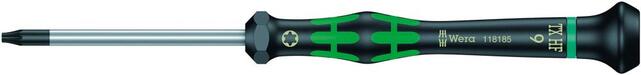 Šroubovák pre vnútorný TORX® pre elektroniku s pridržiavacou funkciou Vyhotovenie: S guľatou čepeľou z vysoko legovanej špeciálnej ocele a hrotom Black Point pre vyšší krútiaci moment a rozmerovú presnosť. S ergonomickou viaczložkovou rukoväťou Kraftform-Micro s integrovanými mäkkými plochami pre lepšie uchopenie, ochranou proti odvaleniu a otočnou hlavou pre rýchle zatočenie. S koncepciou troch zón (zónou presného, silného a rýchleho otáčania) pre ergonomicky lepšiu manipuláciu. Použitie: Vhodný pre presné, účinné a časovo úsporné skrutkovanie. Ideálny pre citlivé nastavovacie práce, napr. použiteľný v oblasti elektroniky. Výrobca: Wera Werkzeuge GmbH, Korzerter Str. 21-25, 42349 Wuppertal, DE, +4920240450, sales@wera.de
