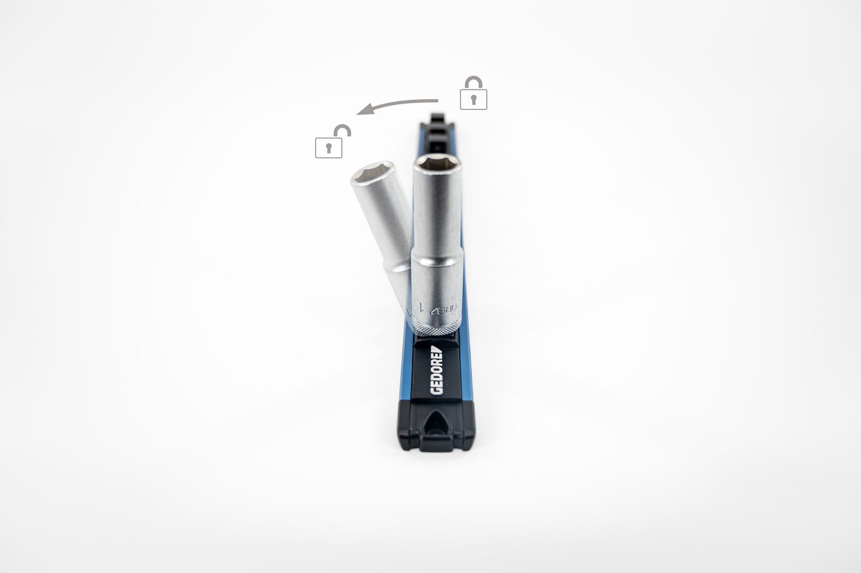 10 vonkajších štvorcových zásuviek 3/8" / 10,0 mm na nástrčné kľúče, mechanizmus zámku Flip-Lock, vizuálne rozpoznanie stavu zámku podľa polohy prepínača, 2 silné magnety umožňujúce bezpečné uchytenie lišty k kovovým predmetom, protišmyková páska na zadnej strane lišty zabraňuje jej posúvaniu, 2 otvory umožňujúce trvalú montáž k nemetalovým predmetom, držiak na zasúvanie Flip-Lock dostupný ako náhradný diel.