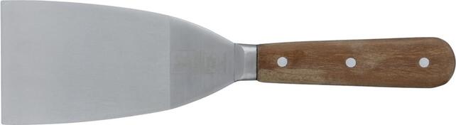 Malířska špachtľa, priebežný list Provedenie: List z nerezovej ušľachtilej ocele, priebežná čepeľ, s 3násobne nýtovanou rukoväťou z ružového dreva. Výrobca: HAROMAC Werkzeugfabrik GmbH & Co. KG, Heinrich-Schicht-Str. 1, 42499 Hückeswagen, DE, +49219291990, service@haromac.de