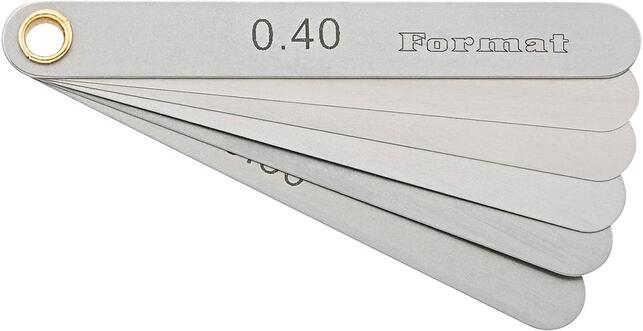 Spárová mierka, presnosť T3 Vyhotovenie: Listy z pružinovej ocele, šírka 10 mm, jednotlivé s popisom veľkosti, kužeľovité do hrotu, aretačná matica. Použitie: Na kontrolu medzier, vzdialeností medzi kontaktmi, atď. Výrobca: Einkaufsbüro Deutscher Eisenhändler GmbH, EDE Platz 1, 42389 Wuppertal, DE, +4920260960, webkontakt@ede.de