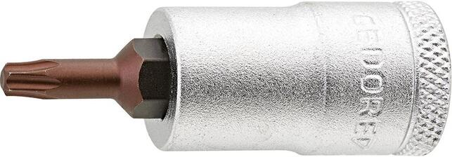 Adaptér-bit 3/8", pre skrutky s vnútorným TORX®, TiN povlak Vyhotovenie: Z chrómovanej vanádiovej ocele, so záchytnou drážkou guľôčky, leštené a pochromované, s drsným ryhovaním, hroty z chrómovanej vanádiovej ocele, TiN povlak, pre vyšší krútiaci moment, odolnosť voči korózii a minimalizácia efektu Cam-Out. Výrobca: GEDORE Werkzeugfabrik GmbH & Co. KG, Remscheider Straße 149, 42899 Remscheid, DE, +492191596900, gedore.empfang@gedore.com
