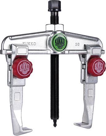Univerzálny stahovák, dvouramenný, model 20+ s rýchlym prestavením Provedenie: S posuvnými, vždy paralelnými, ako aj samostatne centrovacími, presaditeľnými stahovacími hákmi z chrómovej legovanej nástrojovej ocele. S automatickým nastavením rukoväte a zušľachteným tlačným vretienkom so špeciálnym povlakom s mimoriadne dobrými klznými vlastnosťami. Voľne otočný stredový hrot, vymeniteľný a presaditeľný (guľka/hrot). Silný model. Použitie: Pomocou presaditeľných stahovacích hákov je možné používať ako vonkajší a vnútorný stahovák. Pre rýchle povolenie a presunutie stahovacích hákov bez kľúčov na skrutky. Optimalizovaná geometria traverzy a klzného ložiska pre obzvlášť jednoduché posúvanie spúšťacích hákov. Zároveň zabezpečuje pevné držanie po dotiahnutí skrutiek. Nové krížové háky zabezpečujú maximálnu stabilitu zavesenia do klzného ložiska a háku. Rýchlejšia výmena, pretože je potrebný len jeden skrutka. Pre rýchle povolenie a presunutie stahovacích hákov kľúčmi na skrutky. Výrobca: Kleinbongartz & Kaiser oHG, Heinrich-Hertz-Str. 5, 40721 Hilden, DE, +4921039754400, info@KUKKO.com