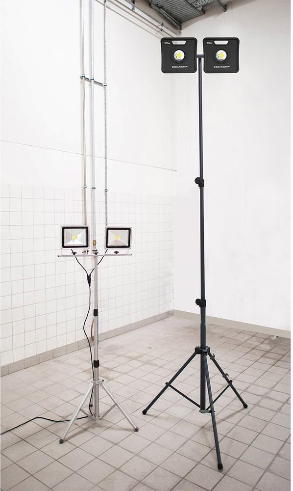 Stativ Stativ, výškovo nastaviteľný Oceľ, práškové povrchové úpravy, s integrovanými klipmi na káble a očkami pre zemné hroty. Pomocou samostatne dodávaného dvojitého kovania je možné pripevniť aj dve pracovné svetlá. Výrobca: SCANGRIP A/S, Rytterhaven 9, 5700 Svendborg, DK, +4563206320, scangrip@scangrip.com