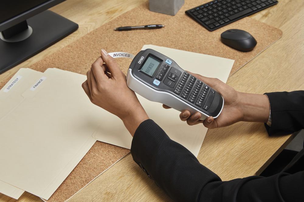 Prístroj na popisovanie LM 160 Provedenie: Ručný prístroj s klávesnicou QWERTZ a veľkým LC displejom. Jednoduchá obsluha, automatický odrezávač a napínák pásu. 6 veľkostí písma, 8 štýlov písma, 4 rámy, podčiarkovanie, špeciálne znaky a klipart. Vytlačenie štítkov DYMO® D1 so šírkou 6, 9 a 12 mm v rôznych farbách. Jednoduché spracovanie textu pomocou klávesových skratiek. Napájanie 6 Mignon batériami AA/LR06. Rozsah dodávky: Prístroj na popisovanie, popisovacia páska D1, čierna na bielej, 12 mm. Výrobca: Newell Brands, Albert-Einstein-Ring 17, 22761 Hamburg, DE, +49 40 85550, contigoeurope@newellco.com