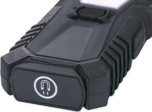 Ručné LED svietidlo 3 W Vyhotovenie: Puzdro z plastu, s pogumovaným povrchom. S hlavným svetlom LED COB a bodovým svetlom LED SMD. 2-stupňové nastavenie svietivosti (30/100 %), s funkciou blikania. Hlava lampy sa dá otočiť o 180°. Zadná časť svietidla je opatrená háčikom na zavesenie a magnetom. Dodáva sa so 4 Mignon batériami AA/LR06. Výrobca: Einkaufsbüro Deutscher Eisenhändler GmbH, EDE Platz 1, 42389 Wuppertal, DE, +4920260960, webkontakt@ede.de