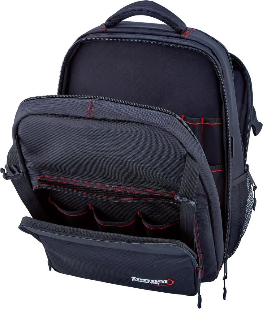 Batoh na náradie, nylon Provedenie: Z čiernej nylonovej tkaniny odolnej proti roztrhnutiu a oderu (1680 Denier), s polstrovaným zadným dielom a zosilnenou strednou deliaciou stenou. Vodoodpudivé, priedušné a ľahká údržba. S polstrovaným nastaviteľným ramenným popruhom. Dodáva sa bez obsahu. Vybavenie: 2 veľkými prednými priehradkami so zipsami 5 zástrčnými priehradkami v zadnej priehradke 24 zástrčnými priehradkami v prednej priehradke 1 veľkou vpredu nasadenou priehradkou so zipsom 2 bočnými vonkajšími vreckami Výrobca: Einkaufsbüro Deutscher Eisenhändler GmbH, EDE Platz 1, 42389 Wuppertal, DE, +4920260960, webkontakt@ede.de