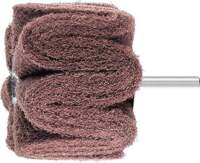 Plstený brúsny kotúč POLINOX na stopke PNG Vyhotovenie: Polyamidové rúno s korundovým posypom (A). Niekoľko prúžkov brúsnej plsti je navinutých vo vlnkách okolo stopky. Upínacia stopka 6 mm. Použitie: Vhodné predovšetkým na bezprechodové matovanie plôch s brúsnou stopou. Ďalej na matovanie, saténovanie a čistenie. Príj. 3000 min-1, max. 6000 min-1. Výrobca: August Rüggeberg GmbH & Co. KG, Hauptstr. 13, 51709 Marienheide, DE, +49226490, pferd@rueggeberg.com