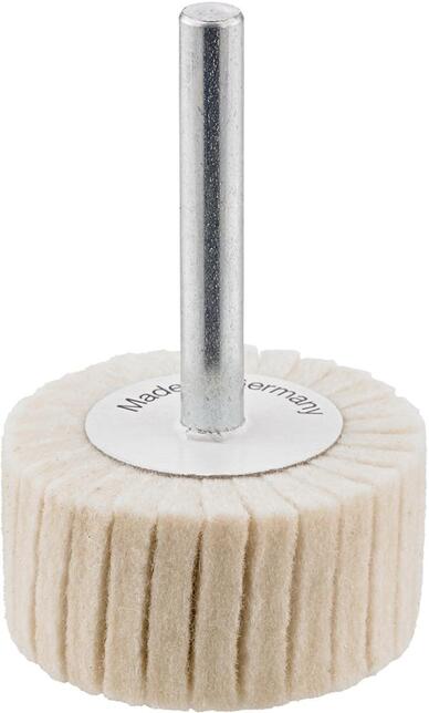 Lamelové filcové brúsne teliesko, 60 x 40 mm Provedenie: Z filcových lamel o hrúbke 2 mm. Vďaka lamelám sa počas leštenia kolík ideálne prispôsobí obrábanému obrysu a dodatočne znižuje teplotné zaťaženie. Stopka ∅ 6 mm. Použitie: K prípravnému lešteniu a k lešteniu malých a stredne veľkých dielcov do vysokého lesku. Ideálne k lešteniu miest s veľmi obtiažnym prístupom. Príj. Obvodová rýchlosť cca 10 m/s. Výrobca: Einkaufsbüro Deutscher Eisenhändler GmbH, EDE Platz 1, 42389 Wuppertal, DE, +4920260960, webkontakt@ede.de