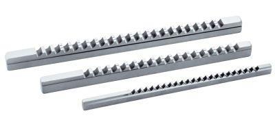 Protlačovací trn na klínové drážky Typ IV, HSS, 10-14 mm Provedenie: HSS, s podbrúsením. Vodící puzdra série I, II a II majú dosedací nákružok, vložky sú zahrnuté v cene. Použitie: Pre výrobu strojových súčastí, šablón, zváracích, vŕtacích a upínacích zariadení. Uhol čela je dimenzovaný na oceľ, ale dá sa použiť aj na liatinu, bronz a hliník. Na rýchle a efektívne zhotovenie rozmerovo stálych, presne vycentrovaných klínových drážok podľa DIN 6885 pre lícovanie JS9. Potrebného úberu triesky sa dosiahne v niekoľkých pracovných chodoch. Tvar zubov a podbrúsenie zaručujú čistý povrch. Možnosť použitia na ručných a hydraulických lisoch. Vložky sú súčasťou rozsahu dodávky protlačovacích trnov. Výrobca: IBT Ingenieurbüro Thiermann GmbH, Paul-Friedländer-Str. 8, 65203 Wiesbaden-Biebrich, DE, +496116909170, info@ibt-gmbh.de