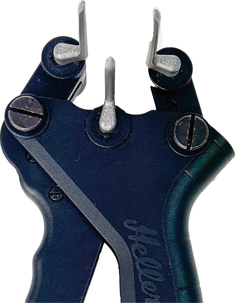 Kliešte so tromi hrotmi Prevedenie: Objímky sa nasunú cez hroty, kliešte sa stlačia a nasunú cez kábel. Akonáhle sa kliešte zavrú, je priechodka na svojom mieste. Použitie: Pre jednoduchú montáž objímok akéhokoľvek druhu na káble a vedenia. Výrobca: Heinz Hesse KG, Yale-Allee 17, 42329 Wuppertal, DE, +49202734282, info@heinz-hesse-kg.com