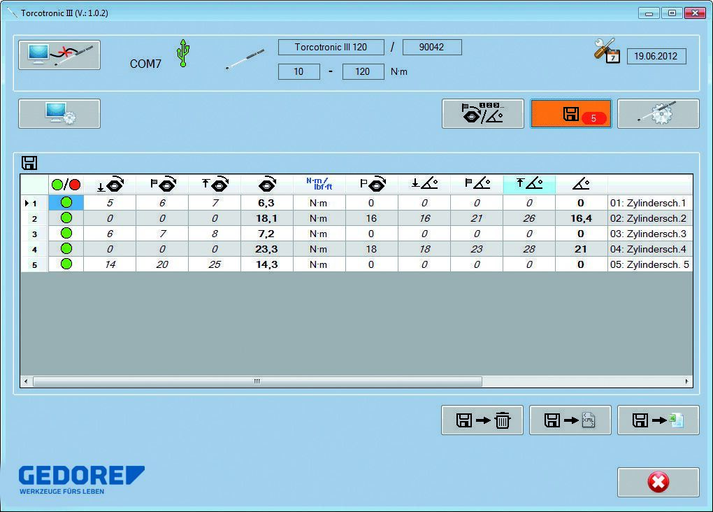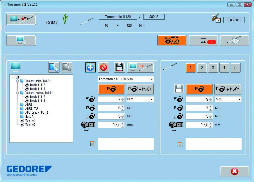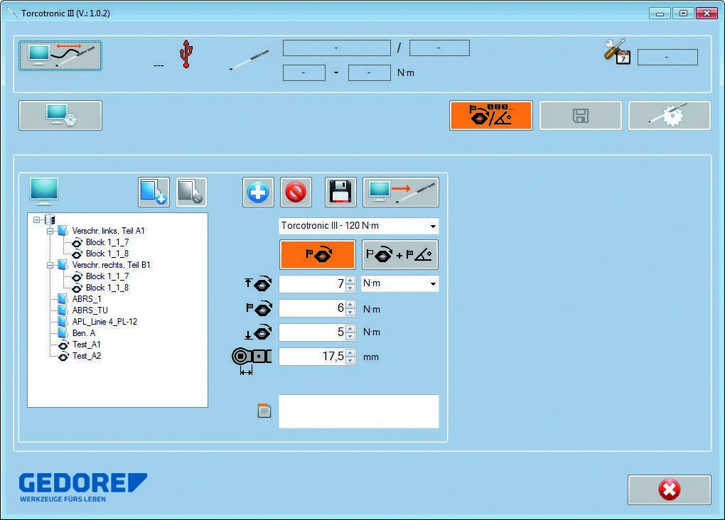 Využitie: Na každodenné požiadavky pri montáži alebo regulácii krútiaceho momentu, Používané vo všetkých oblastiach výroby a vývoja, Vyhotovenie: Mikroprocesorom riadený, elektronický dynamometrický kľúč, Pre kontrolovaný kombinovaný pravý a ľavý, Konštrukcia v súlade s normou DIN EN ISO 6789, identifikovateľná s národnými normami, Pevná konštrukcia pre dielne, Široký rozsah merania v Nm, prepínateľný na lbf·ft, S otočnou ráčnou 1/2", výmenou ráčny je možná práca s obdĺžnikovým upínaním 9x12 mm (č. TT3H 120) alebo 14x18 mm (č. TT3H 350)., Vlastnosti: Meranie krútiaceho momentu a uhla otáčania, 4 rôzne meracie režimy, Možnosť uloženia 5 parametrov skrutkovania, USB rozhranie na výmenu dát, 2000 miest pamäte, Presnosť merania krútiaceho momentu /- 1 %, /- 1 číslica, Presnosť merania uhla otáčania /- 1 %, ale minimálne /- 1° do 360° pri minimálne 4°/sek., Rôzne rozmery stehu na vkladanie nástrojov programovateľné, Jednoduché ovládanie vďaka používateľsky prívetivej navigácii v menu s ikonami a 4 funkčnými tlačidlami, Ľahko čitateľný, podsvietený displej, Rozlíšenie Krútiaci moment: 0,1 Nm, Rozlíšenie Uhol otáčania: 0,1°, Ľahko použiteľný počítačový softvér uľahčujúci programovanie a dokumentovanie dát, Export dát do MS Excel®., Zámok klávesnice, Môžu sa používať štandardné články AA alebo voliteľne akumulátory (NiMH)., Optická vizualizácia: 3x LED (žltá, zelená, červená), Akustická signalizácia: Bzučiak, Schválené TÜV SÜD, CE a RoHS