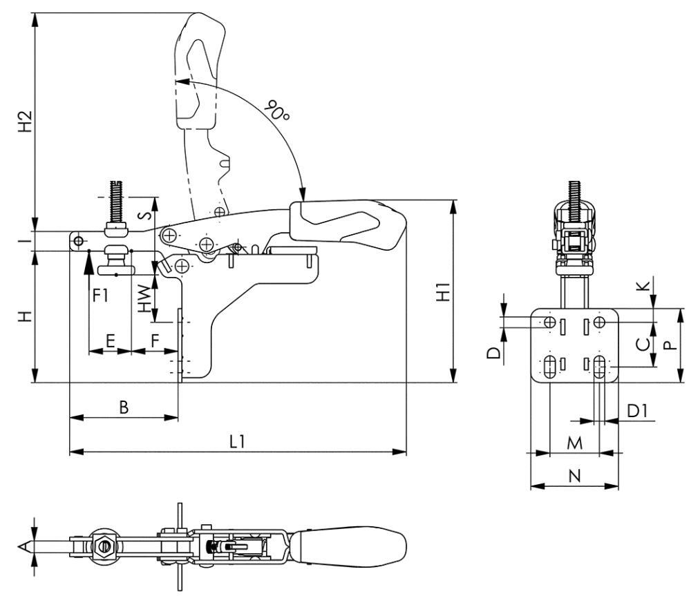 Vodorovná upínka s variabilnou výškou upnutia a uhlovou patkou Prevedenie: Vodorovná upínka s otvoreným pridržiavacím ramenom a uhlovou patkou. Pozinkované a pasivované. Nity z nerezovej ocele. Mazané ložiskové miesta. Ergonomická rukoväť odolná proti oleju s veľkým madlom a mäkkou komponentou. Bezpečnostný upínací prvok s ochranou proti zovretiu prstov. Bezpečnostný upínací kus s poistkou proti strate prítlačného skrutky na konci upínacieho ramena. Použitie: Na namontovanie zboku. Obsah dodávky: Komplet so zušľachteným pozinkovaným prítlačným skrutkou. Výrobca: Andreas Maier GmbH & Co KG, Waiblinger Str. 116, 70734 Fellbach, DE, +4971157660, amf@amf.de
